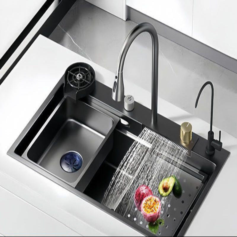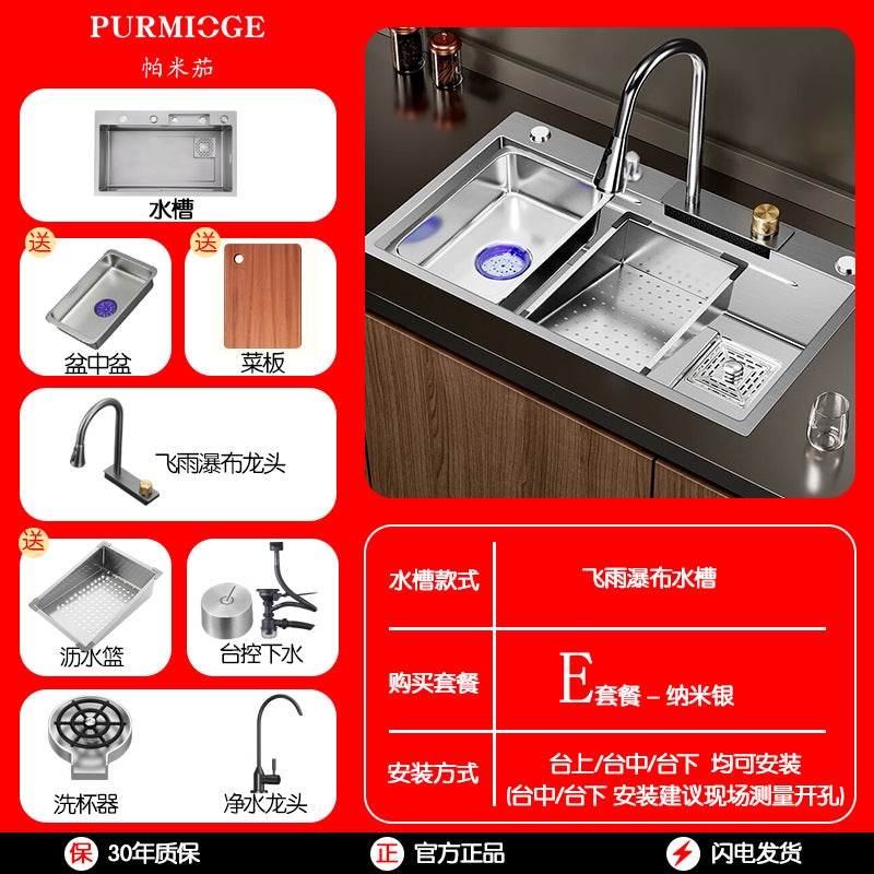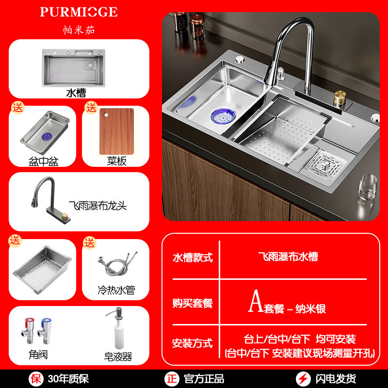 حوض مطبخ سميك من الفولاذ المقاوم للصدأ، حوض غسيل يدوي للخضراوات، شلال مياه الأمطار المنزلي، حوض واحد كبير من KS - نانو سيلفر [الحزمة أ] صنبور Rainflight + موزع صابون / 60×45 سم تم طلبه مرة أخرى وسيتم شحنه بمجرد توافره مرة أخرى في المخزون.