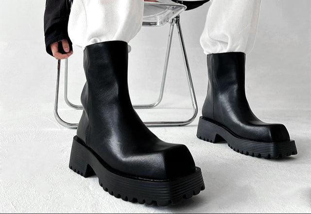 حذاء مارتن ذو مقدمة مربعة من أوروبا والولايات المتحدة للرجال على طراز الشارع البريطاني ذو النعل السميك من تشيلسي، حذاء مارتن من الجلد الأصلي للمشاهير على الإنترنت