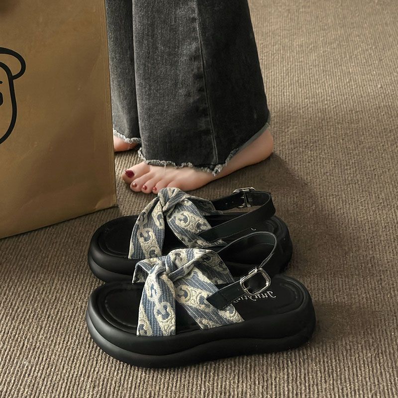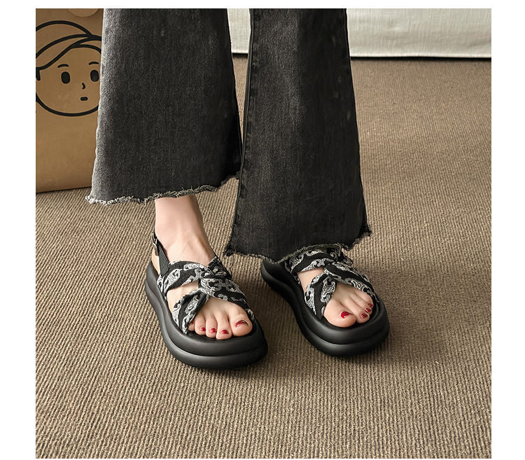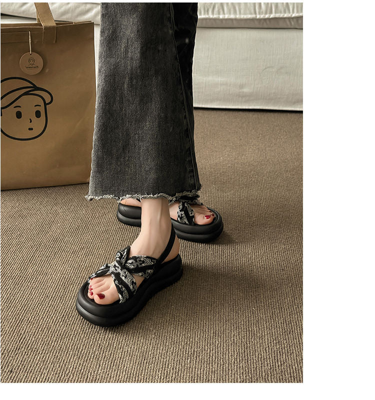 صنادل روماني مرتفع بنعل سميك أسود للنساء