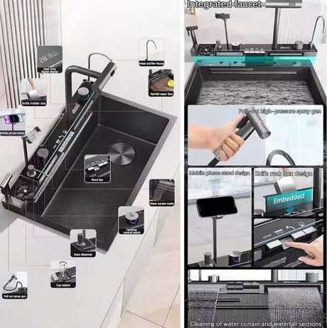 Smart Waterfall Multi-Functional Kitchen Sink Mobile Phone Holder Spray Gun KS