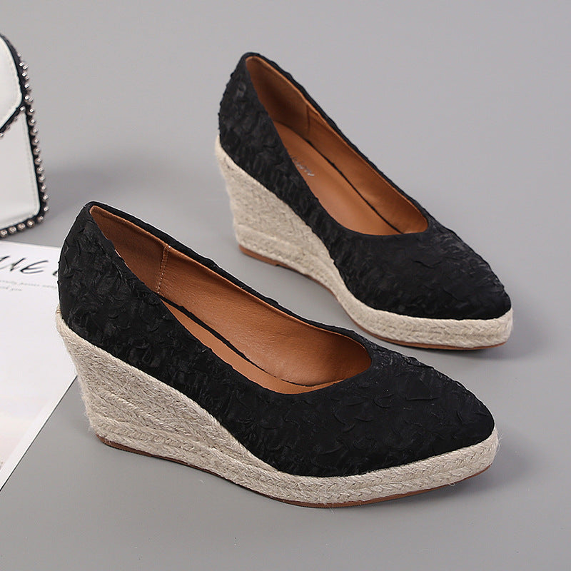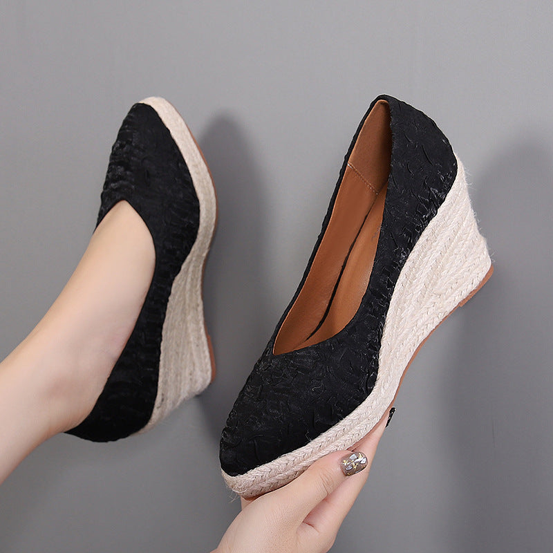 خواتین کے لیے ویج ہیل موٹی سولڈ سنگل شوز